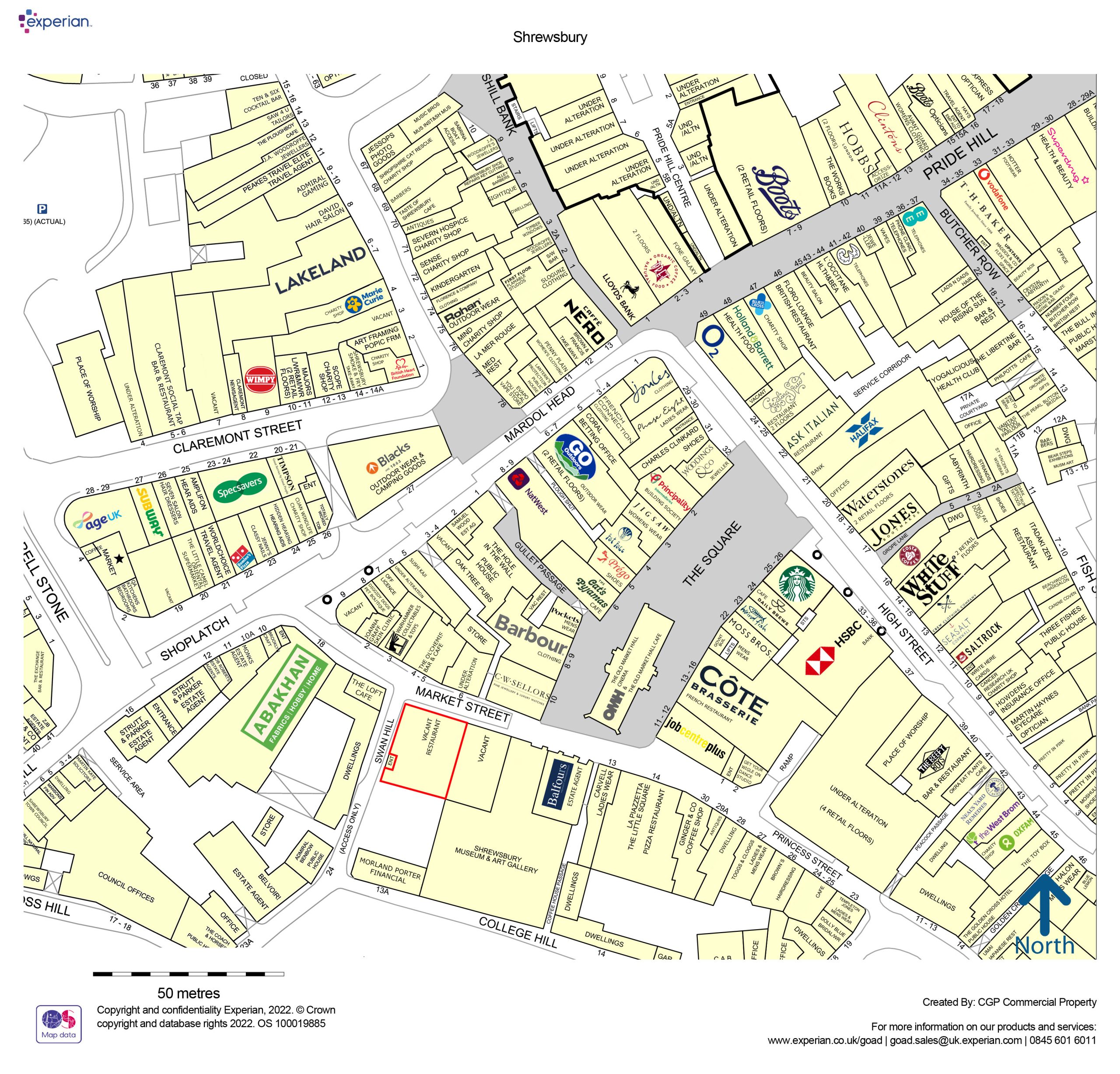 - Nearby occupiers include Cote Brasserie, FatFace, Giggling Squid, Ask Pizza, La Piazzetta, Beefy Boys, Ginger & Co, Jigsaw, Starbucks Coffee, HSBC and adjacent to Shrewsbury’s Museum and Art Gallery.