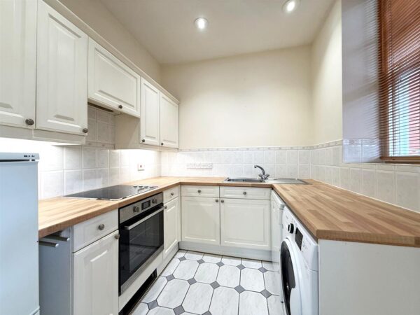 * Separate fitted kitchen with tiled flooring and window to side.
