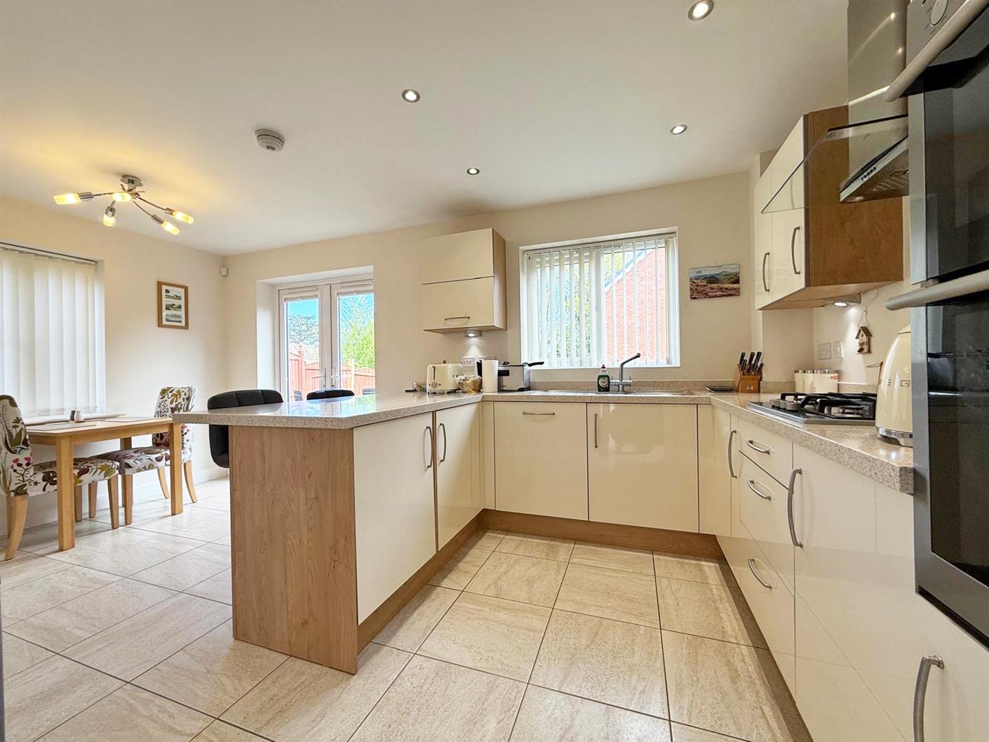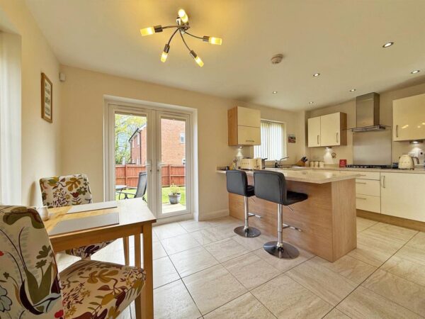 * Large open plan and well fitted kitchen/dining room with a range of integrated appliances and glazed double doors to rear garden. Adjoining the kitchen there is a utility room fitted to the same standard, with door providing side access to driveway.