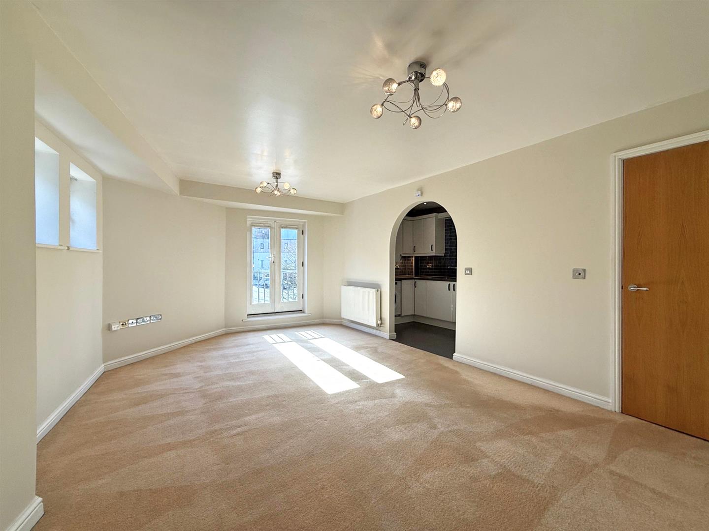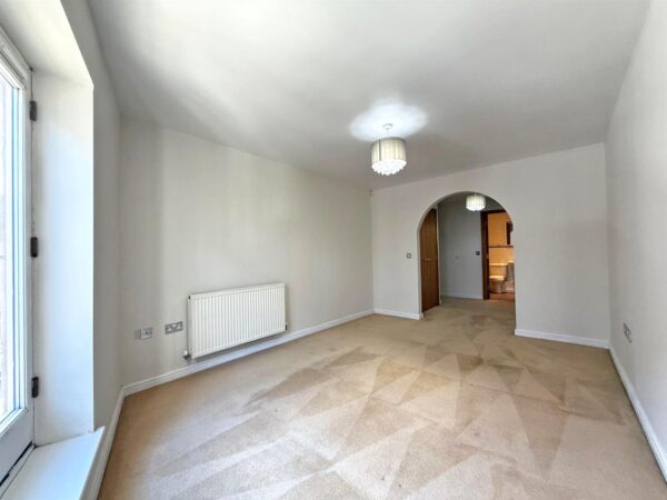 * Open plan living/dining room with windows to side and glazed doors with Juliette balcony to front