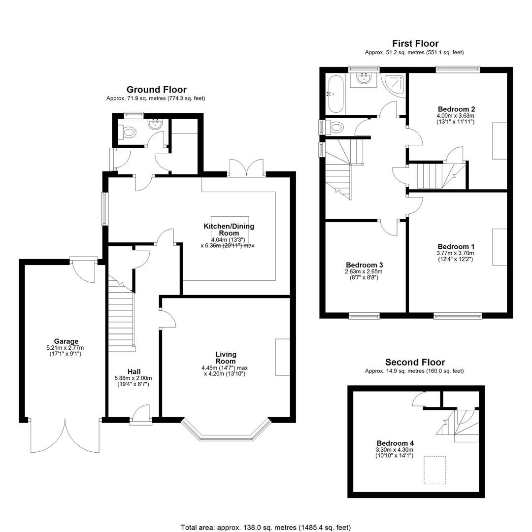 * Staircase from hall to first floor landing where there are 3 bedrooms and a family bathroom with shower. From the landing there is a door to an enclosed staircase which leads to a lovely second floor double fourth bedroom.