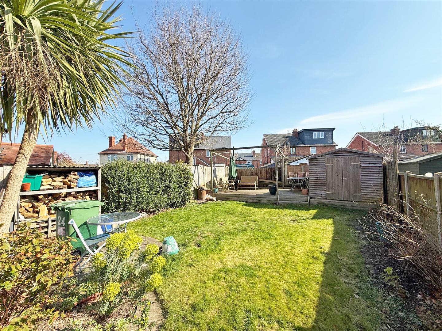 * Good sized rear garden which is mainly lawned with established beds and a decked sun terrace with large workshop/store.