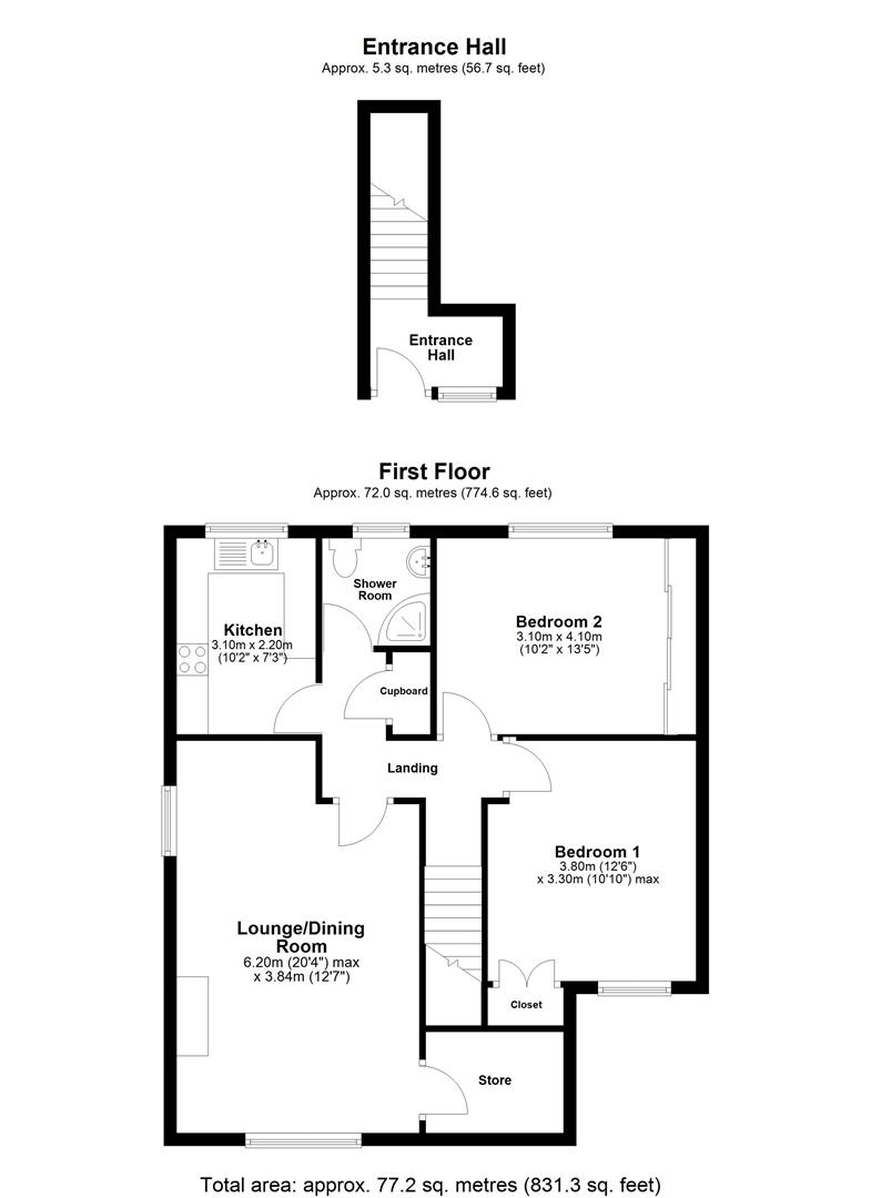 BEDROOM TWO about 3.1m x 4.1m (about 10'2" x 13'5")