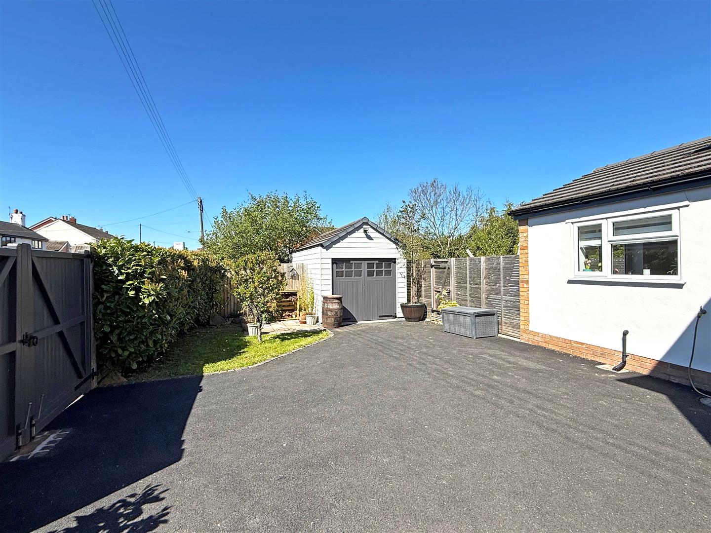 * To the front of the property there is a driveway which provides parking for about 3 cars. There is also double gated access to the side where there is a further sizable secure driveway that provides additional parking, as well as access to the detached garage.
