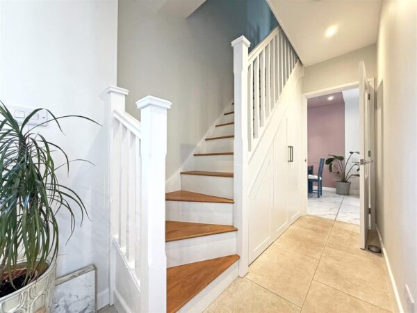 * Entrance hall with tiled flooring that runs through to the adjoining utility, cloakroom and home office.