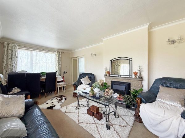 * Open plan living/dining room with a feature fireplace and windows to two elevations