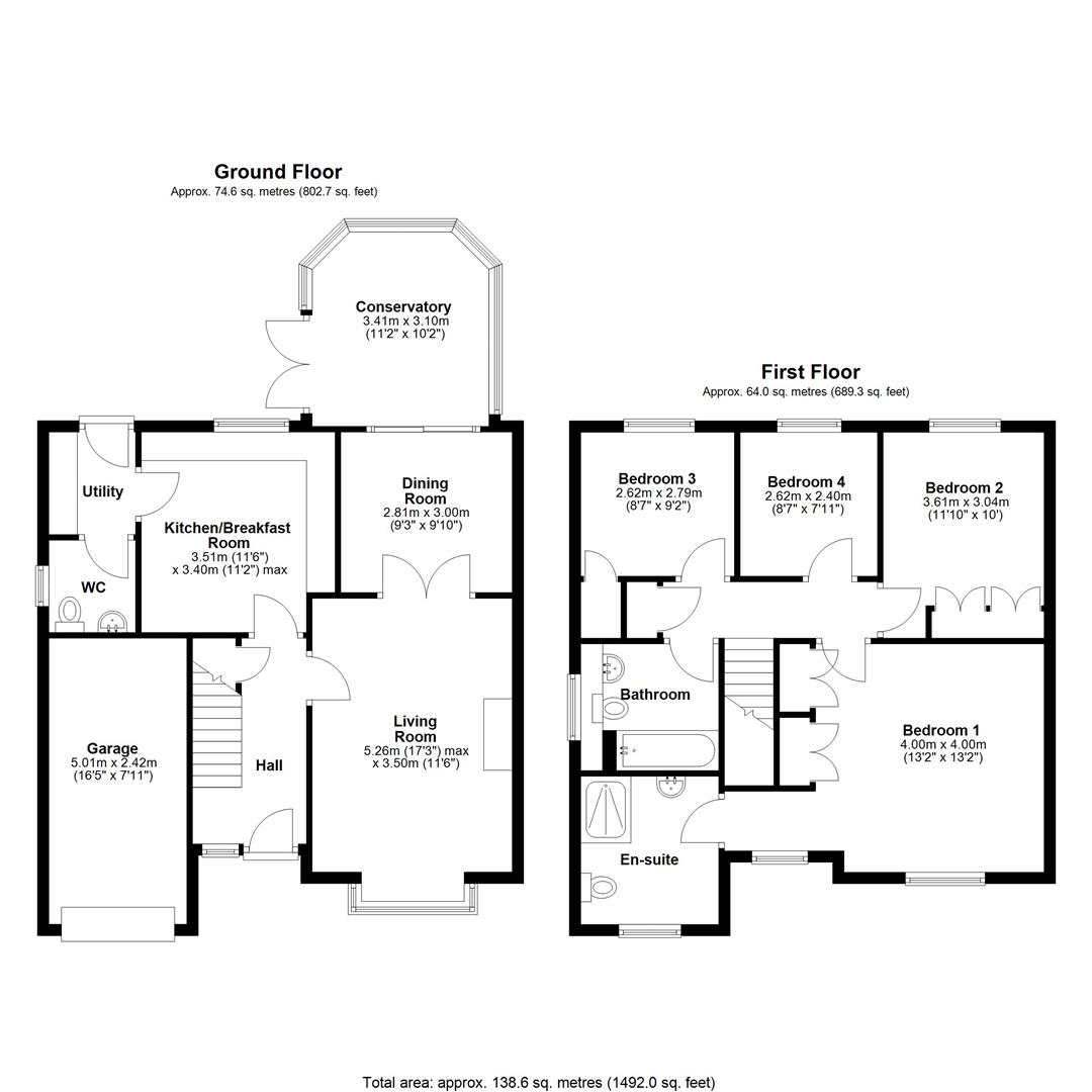 * Separate dining room opening onto the conservatory, which has glazed doors to the rear garden