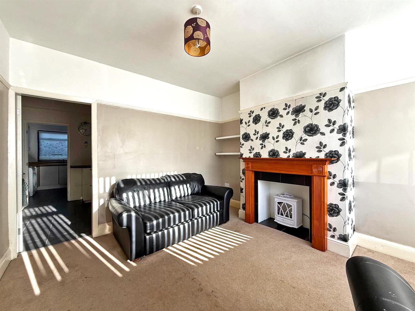 * Entrance hall opening to a living room with feature fireplace and bay window to front