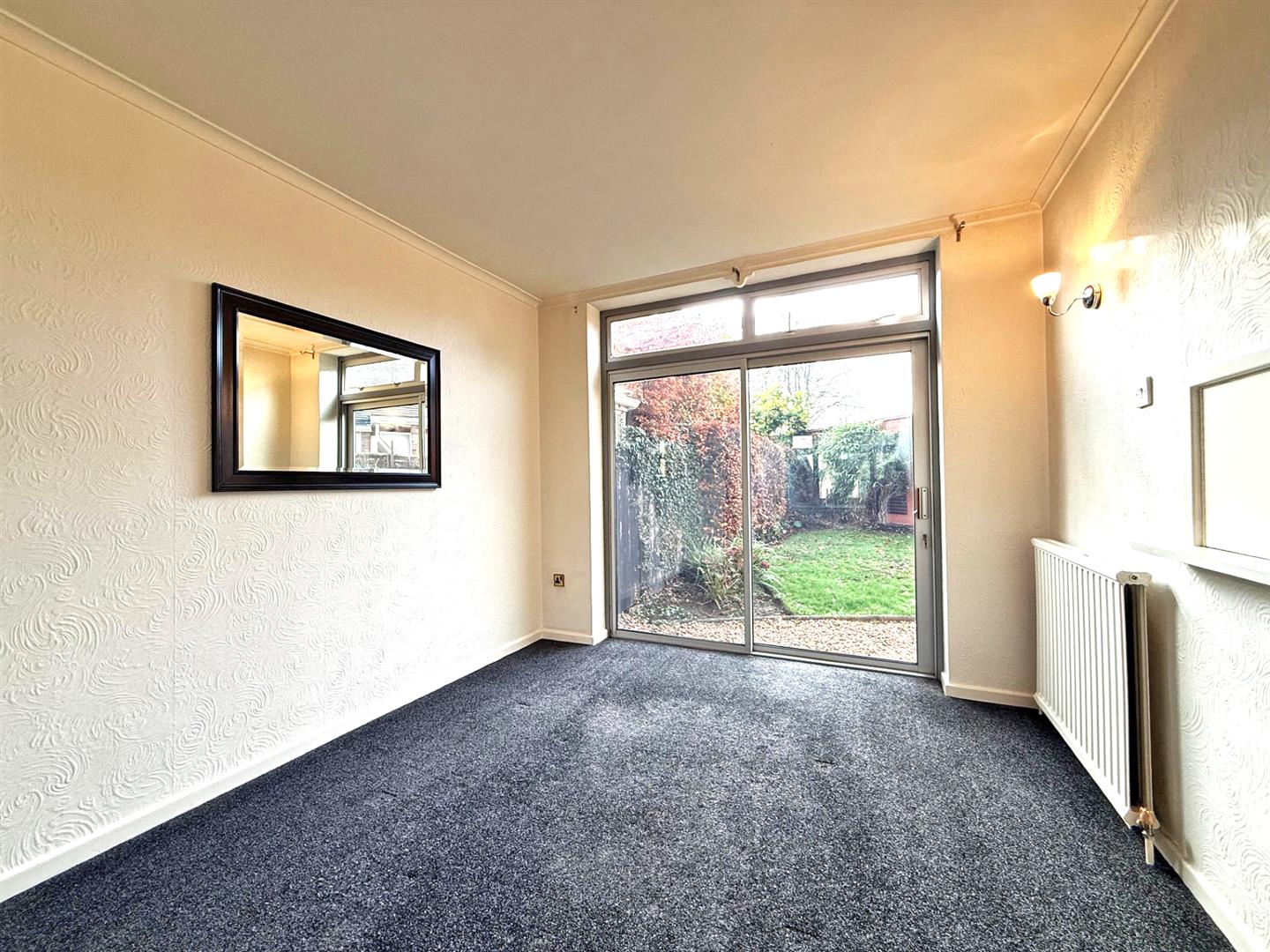 * Open plan living and dining rooms with the living area having a feature fireplace and window to front, whilst there are gazed patio doors from the dining area to the rear garden.