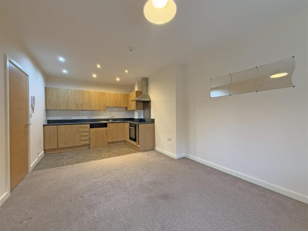 * Open plan kitchen/living/dining room with window to front
