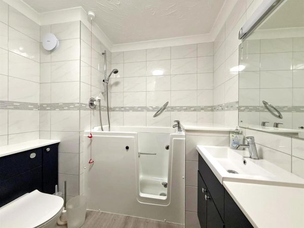 * Re-fitted bathroom, installed within the last 2 years, with a specialist accessible walk-in bath and shower, and very practical vanity unit. There is also a large airing cupboard that houses the hot water tank and is shelved for excellent storage