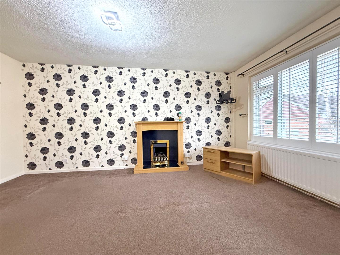 * Living room with feature fireplace and window to front.