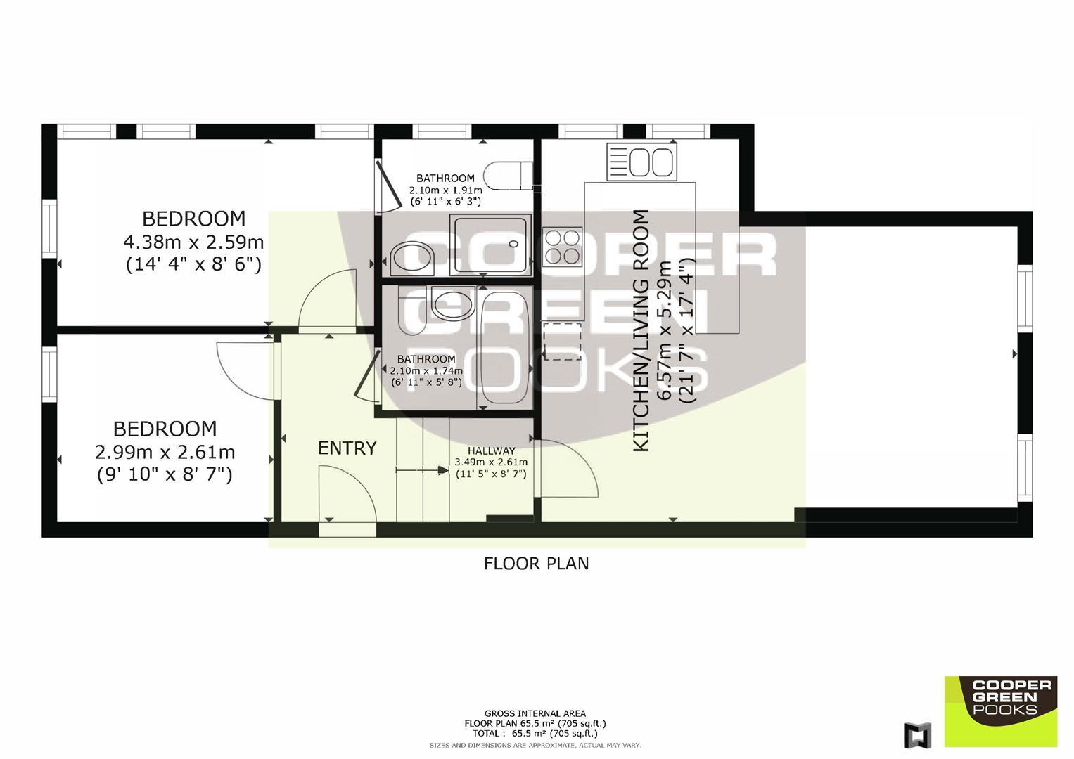 KITCHEN/LIVING ROOM about 6.5m x 5.2m (about 21'3" x 17'0")