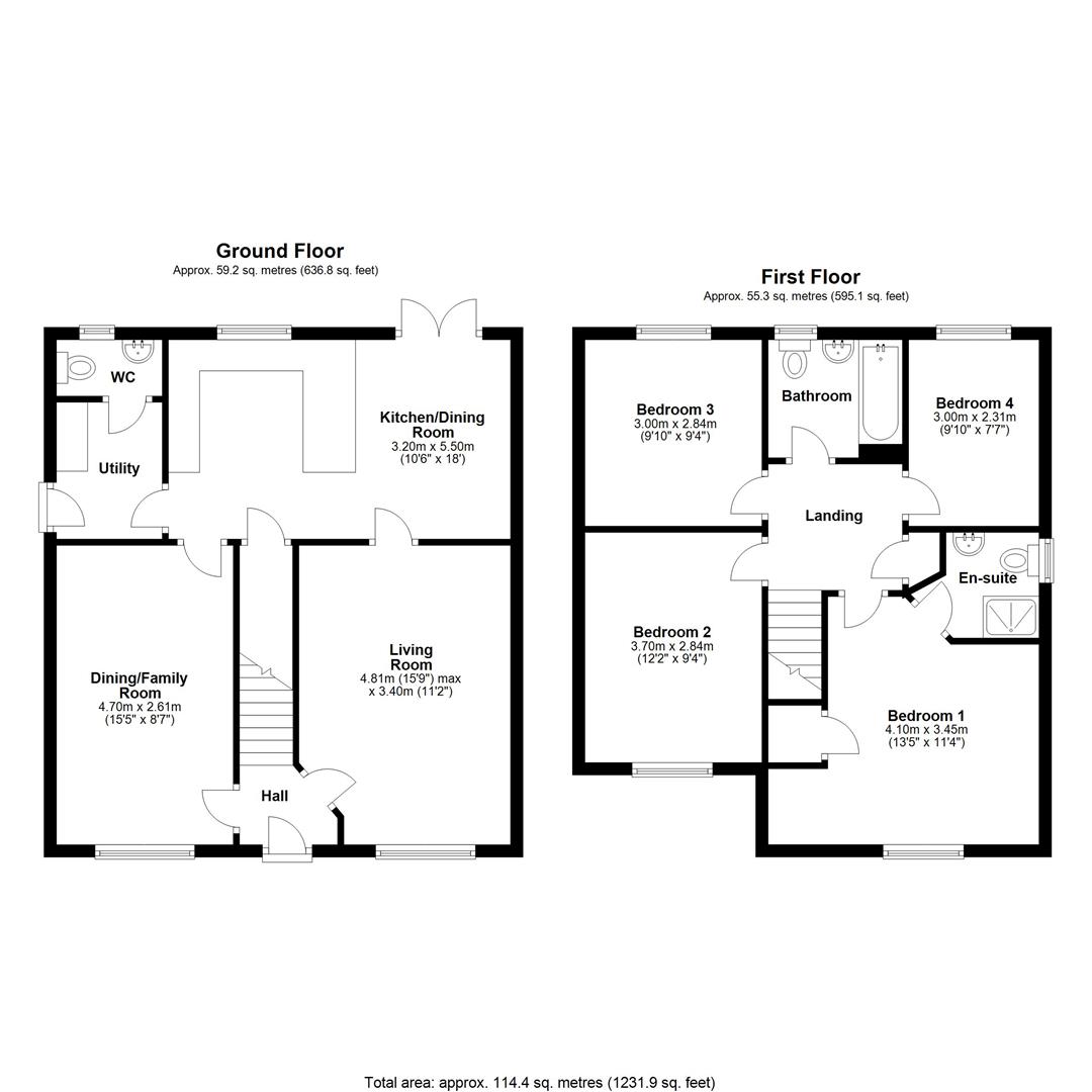 * On the first floor is a master bedroom with en-suite shower room, three further good-sized bedrooms, and a well-appointed family bathroom