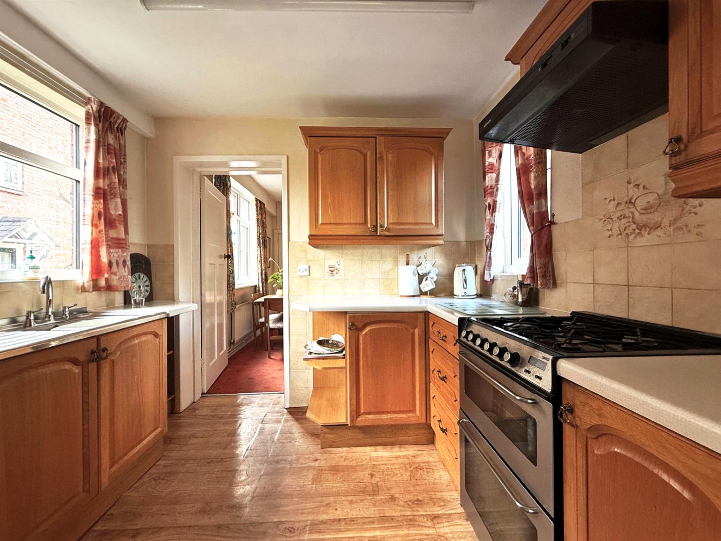 * Dining room connecting to the large fitted kitchen, which has windows to three elevations, a separate WC and door to side.