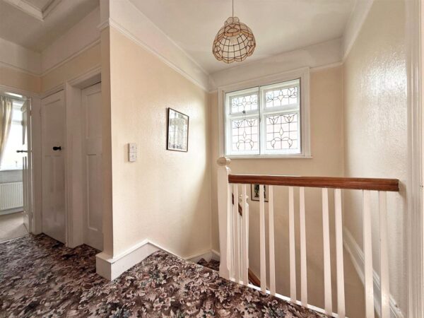 * Staircase from hall to the landing, where there is access to a large roof space, three bedrooms and a shower room. There is also a separate WC and a walk in airing cupboard.