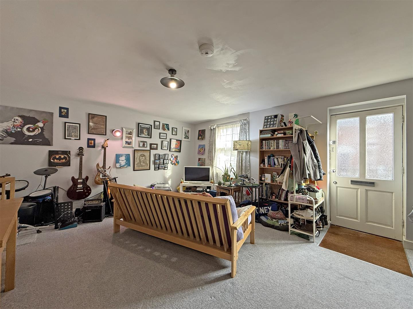* Open plan kitchen/dining/living room with window to front
