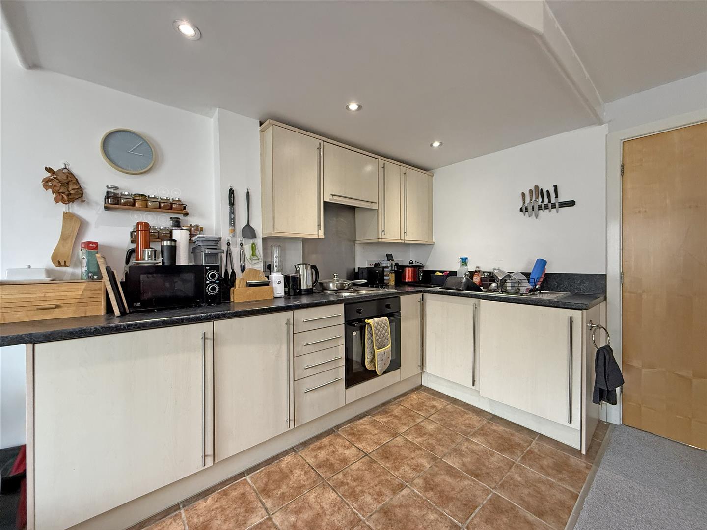 KITCHEN/LIVING/DINING ROOM about 5.6m x 4.8m (about 18'4" x 15'8")