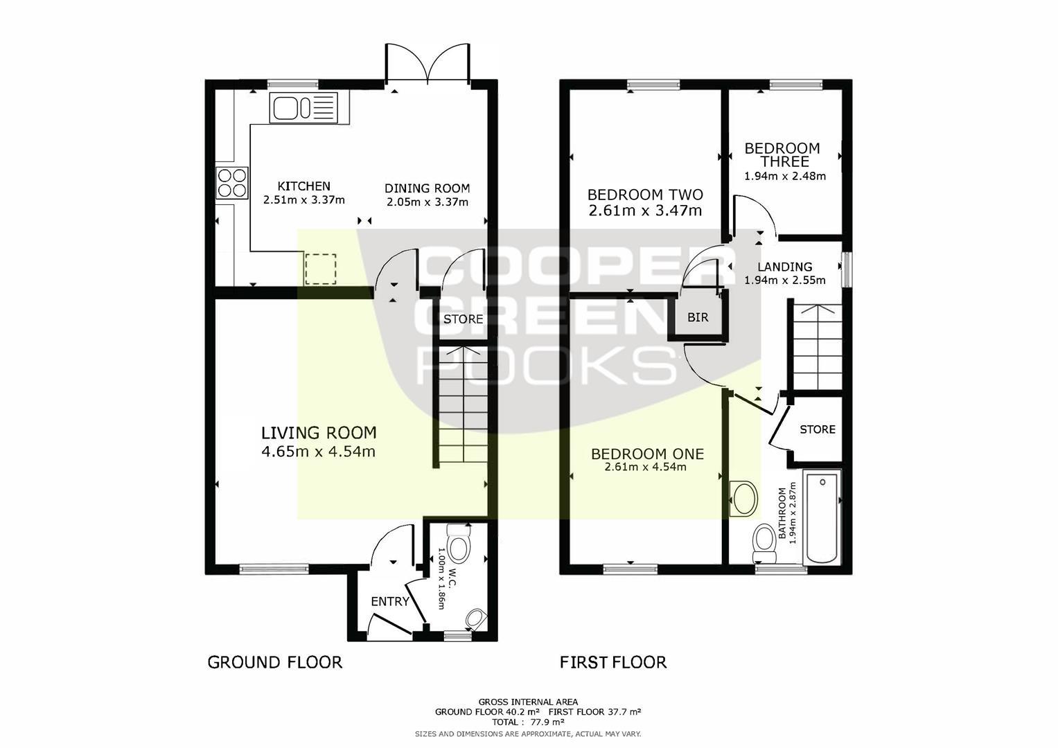BEDROOM ONE about 2.6 x 4.5 (about 8'6" x 14'9")