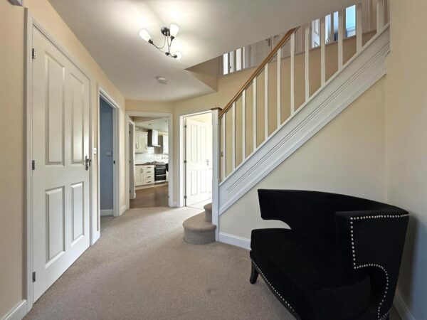 Located in a lovely setting with south facing rear garden and open views to front. This attractively designed family home offers superb accommodation with a large driveway and double garage, whilst being conveniently situated in a popular area of the town, close to good schools and within easy reach of the bypass.