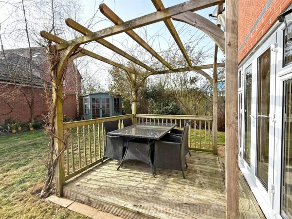 * Private and secure south facing rear garden that’s laid mainly to lawn with established beds, paved pathways and sun terraces.