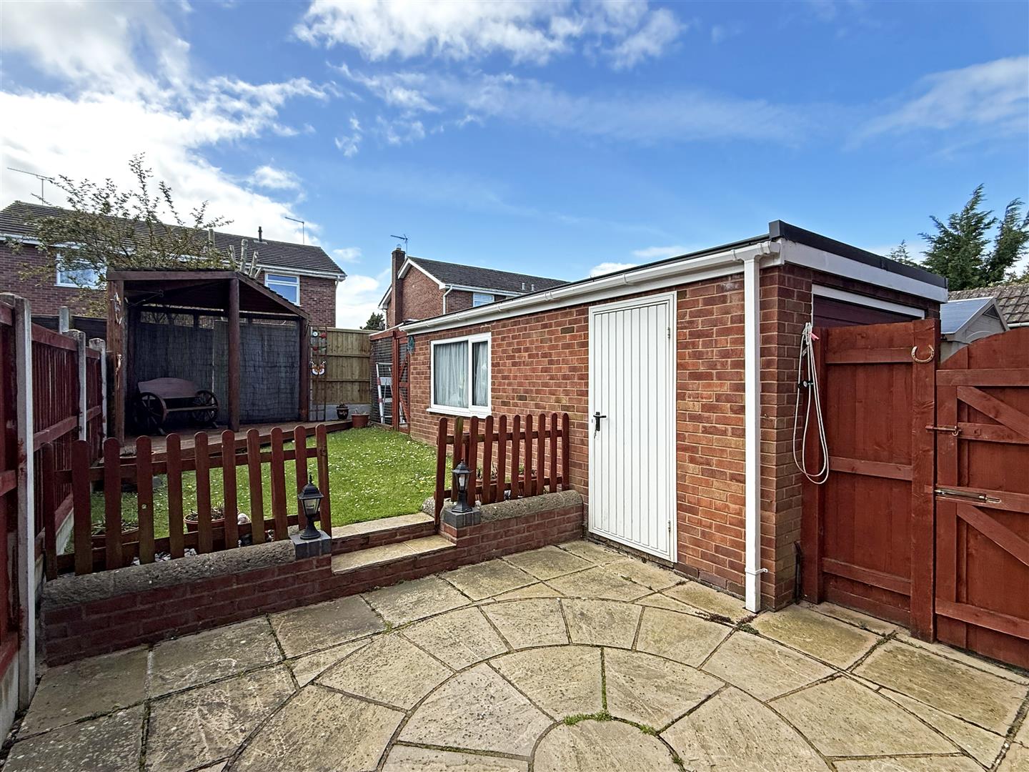 * Private south facing garden, laid to lawn with paved and decked terraces, access to the garage, and secure gate to side