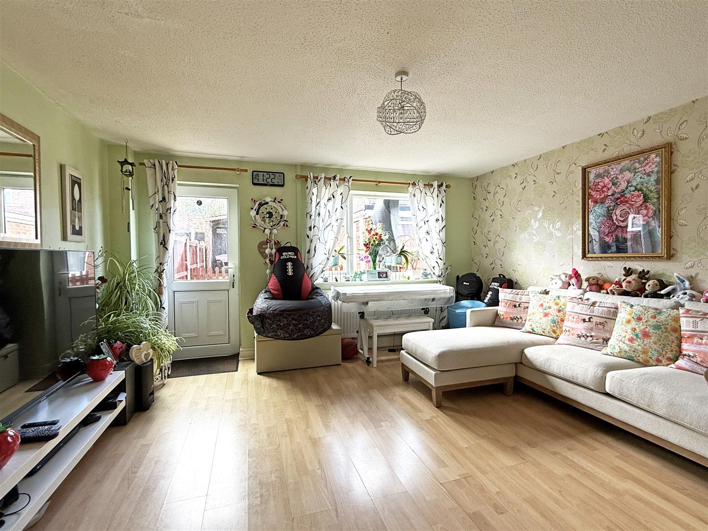 * Good sized living/dining room with useful under stairs storage, window and glazed door to the rear garden