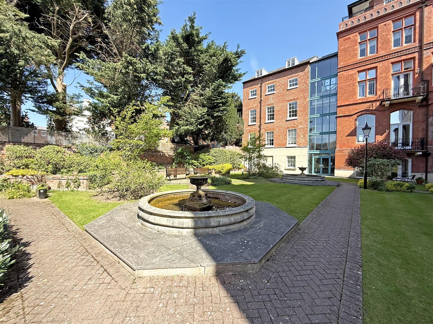 * Stunning communal gardens and various seating areas, offering views towards the Quarry Park and River Severn