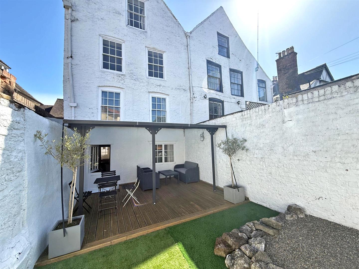 Located in a lovely setting on one of the town’s prettiest streets a stone’s throw from the beautiful Quarry Park. This is a rare opportunity to purchase an attractive and substantial Grade II Listed town centre property, which is currently divided into 3 spacious and well-maintained apartments with a private walled garden. The current annual rental income for the 3 apartments could comfortably be in the region of £27,000 and the property could also be easily converted into a single town house if preferred.