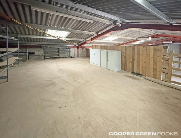 To the front of the unit, there is an office area finished to a good standard, incorporating plastered walls and ceiling, carpet-tiled flooring, and PVC timber-effect doors and windows. Kitchenette facilities are also provided within the unit, with communal WC facilities located elsewhere on the site.