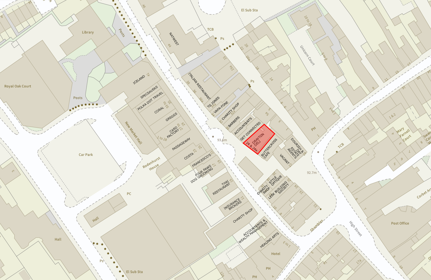 Nearby occupiers include Leek Building Society, Style Optique (opticians), Get Connected (mobile network provider) Purcell Accountants, Francesco’s (hair salon), Greggs, Costa, Specsavers Opticians and Audiology, Polka Dot Travel, Natwest Bank and the New Market Hall among a variety of other national and independent retailers, café’s and restaurants.