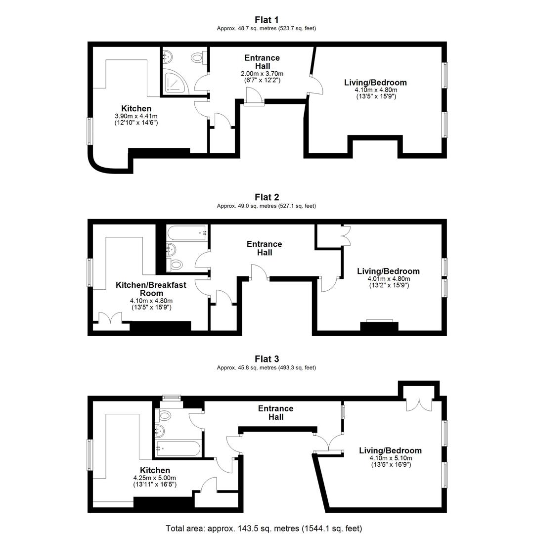 • The three studio flats above are let on Assured Shorthold Tenancies generating a total income of £19,800 per annum.